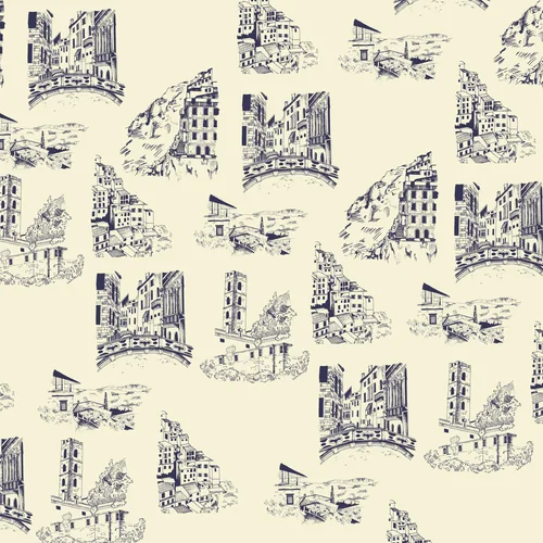 Toile designs hand drawn and then developed in Adobe Illustrator. Scenes drawn from photos of my trip to Italy.